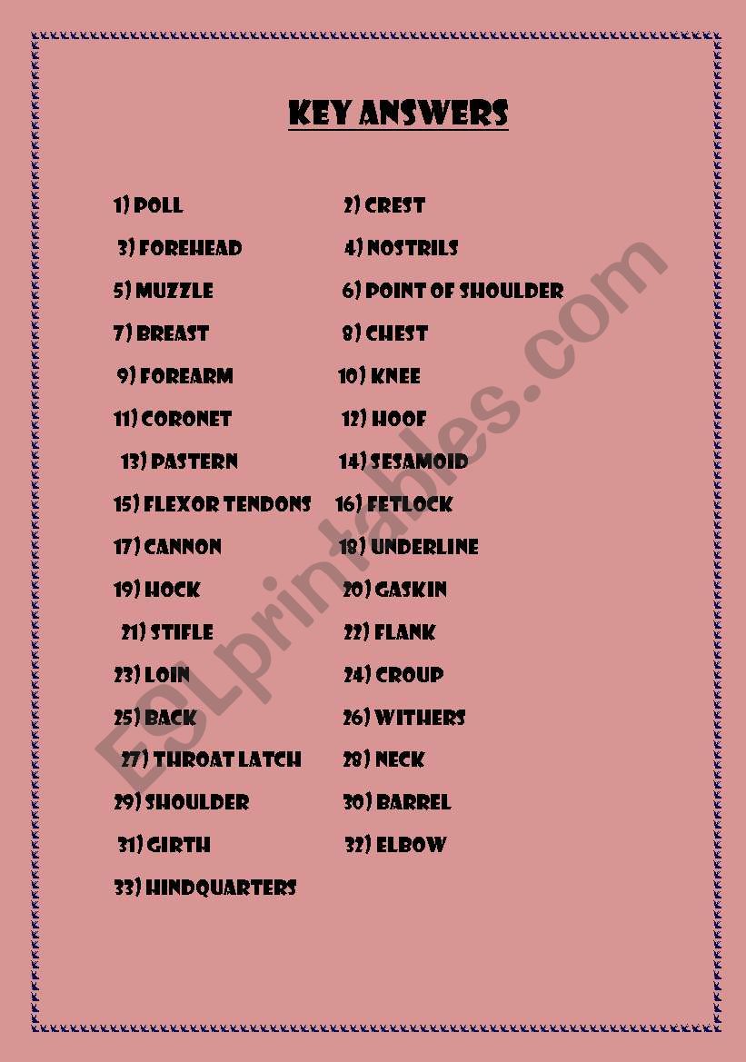 Web This worksheet will give you reader practice by naming the different parts of the body. Some of the worksheets. Web Body Parts of Horse Please share this worksheet In this free printable worksheet.