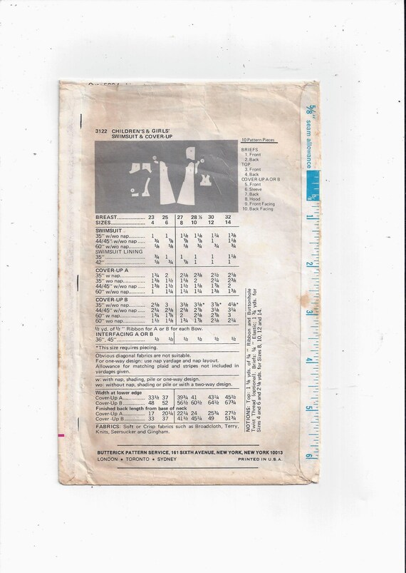 Butterick 3122 Pattern For Girls Swimsuit Hooded Etsy